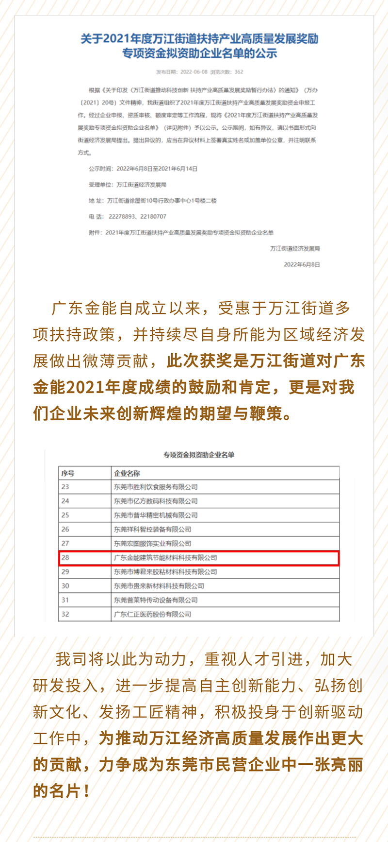 喜报!我司荣获2021年度万江街道高质量发展项目